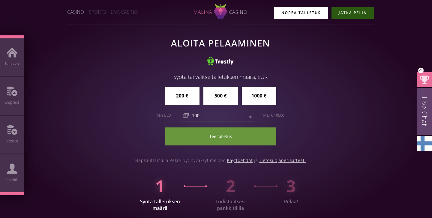 Accessing the Malina Casino